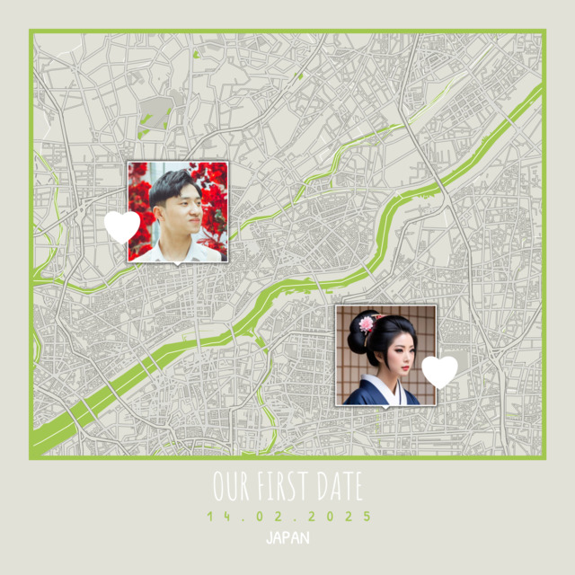 Verwandle jeden Ort in eine einzigartige Erinnerung auf einem Poster. Gestalte mit nur wenigen Klicks kostenlos wunderschöne Kartenbilder. Wähle einen Kartenstil, füge einen Rahmen hinzu, passe Schriftarten an, füge Markierungen, Masken und Text hinzu, um deinen besonderen Ort hervorzuheben. Ob es der Ort ist, an dem ihr euch kennengelernt habt, an dem etwas passiert ist oder ein Reiseziel, das euch viel bedeutet – eure personalisierte Kartengrafik erzählt die Geschichte. Eure Geschichte verdient mehr als nur Worte, sie verdient einen Platz auf der Karte.