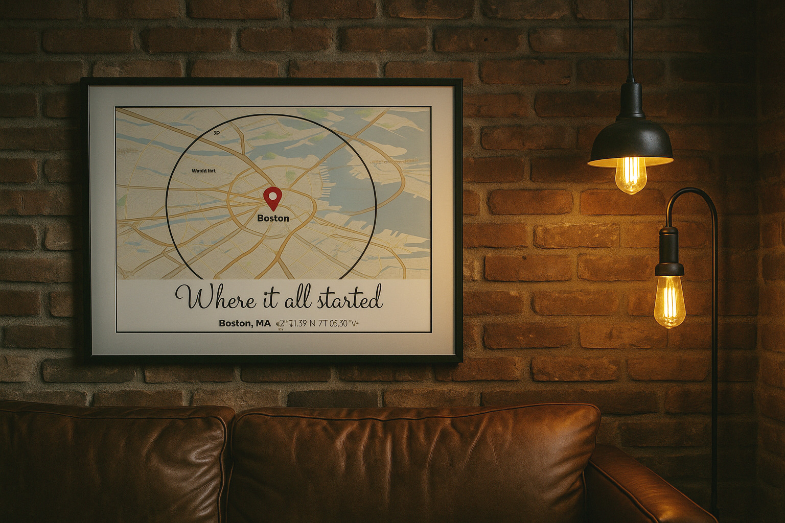 Verwandle jeden Ort in eine einzigartige Erinnerung auf einem Poster. Gestalte mit nur wenigen Klicks kostenlos wunderschöne Kartenbilder. Wähle einen Kartenstil, füge einen Rahmen hinzu, passe Schriftarten an, füge Markierungen, Masken und Text hinzu, um deinen besonderen Ort hervorzuheben. Ob es der Ort ist, an dem ihr euch kennengelernt habt, an dem etwas passiert ist oder ein Reiseziel, das euch viel bedeutet – eure personalisierte Kartengrafik erzählt die Geschichte. Eure Geschichte verdient mehr als nur Worte, sie verdient einen Platz auf der Karte.